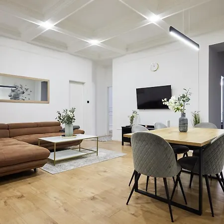Spacious Luxury Apartment In The City Centre offers a fully-fitted kitchen, which includes an oven and a dishwasher. The nearest bus stop, Nyar utca, is 450 metres away.